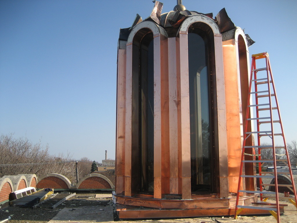 Illinois Custom Copper's metal and copper fabrication is astonishing. Our field capabilities give your home or building a dramatic architectual effect. We give the job the finesse that gives our customer pride and satisfaction. Not only does the job look superb but, the main thing is that it keeps the water where it should be, on the outside. Even though, most projects are out of sight of flaws. Illinois Custom Copper makes sure the flaws don't occur. We like to think of it as being the jewlery for your home unlike the cheap imitation and product substitution!! Always making sure you get what you pay for.
